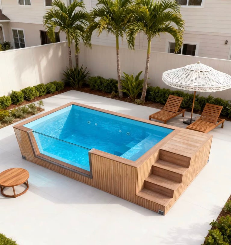 Añade una piscina prefabricada moderna y funcional para completar tu vivienda modular con diseño, confort y valor añadido.
